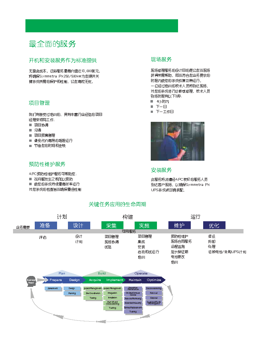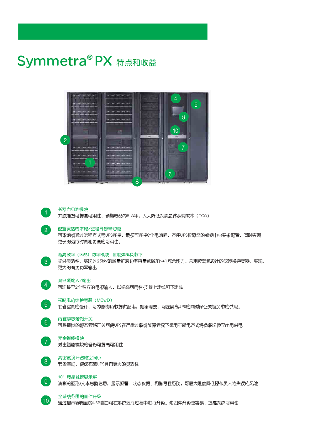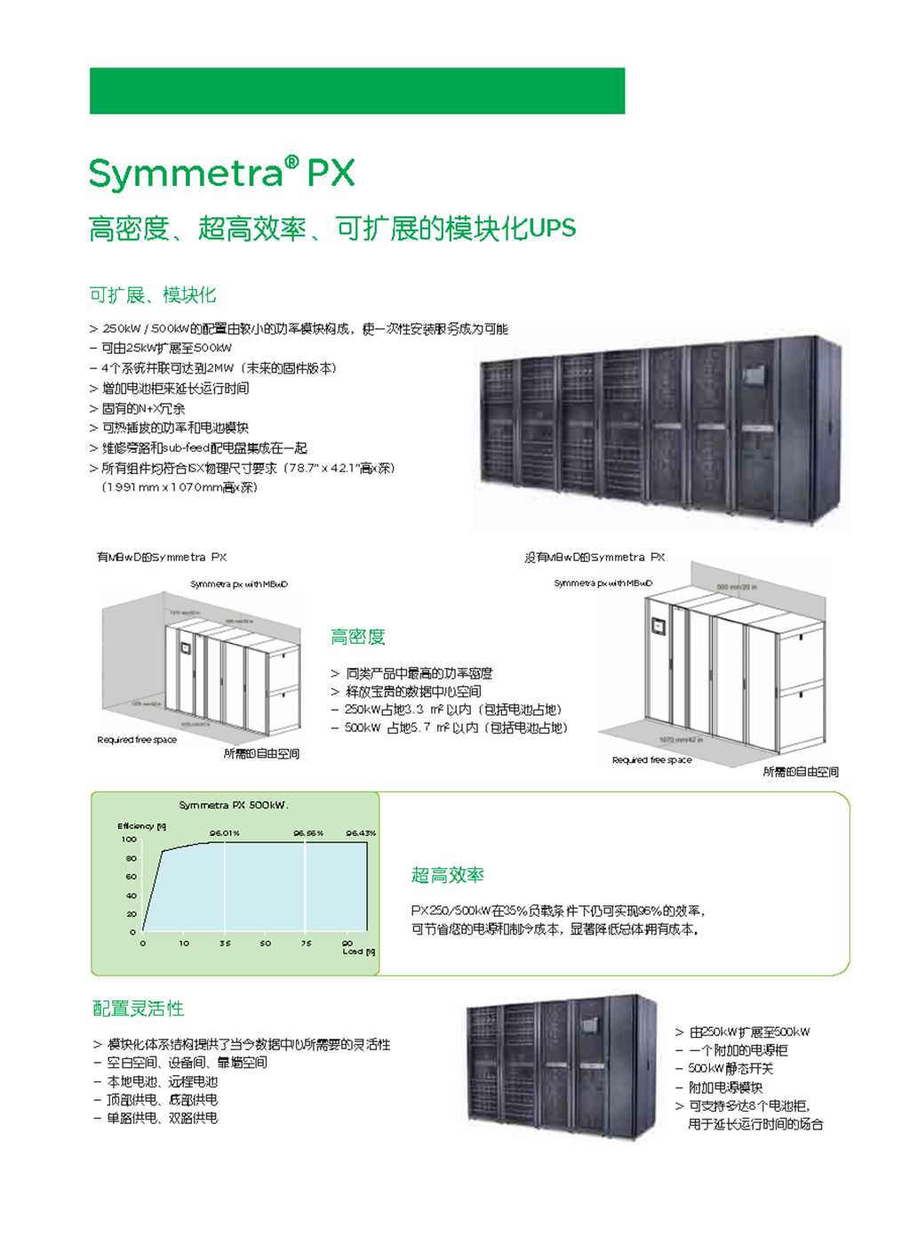 高性能、大小适中、模块化、可进行热升级、具有超高可用性和效率的3相电源保护,适用于任何规模的数据中心或高功率密度区。